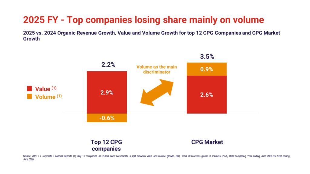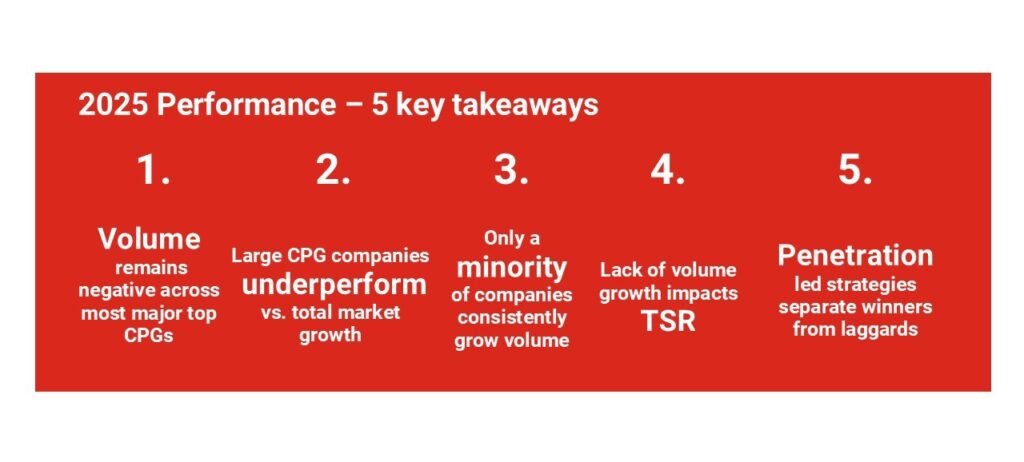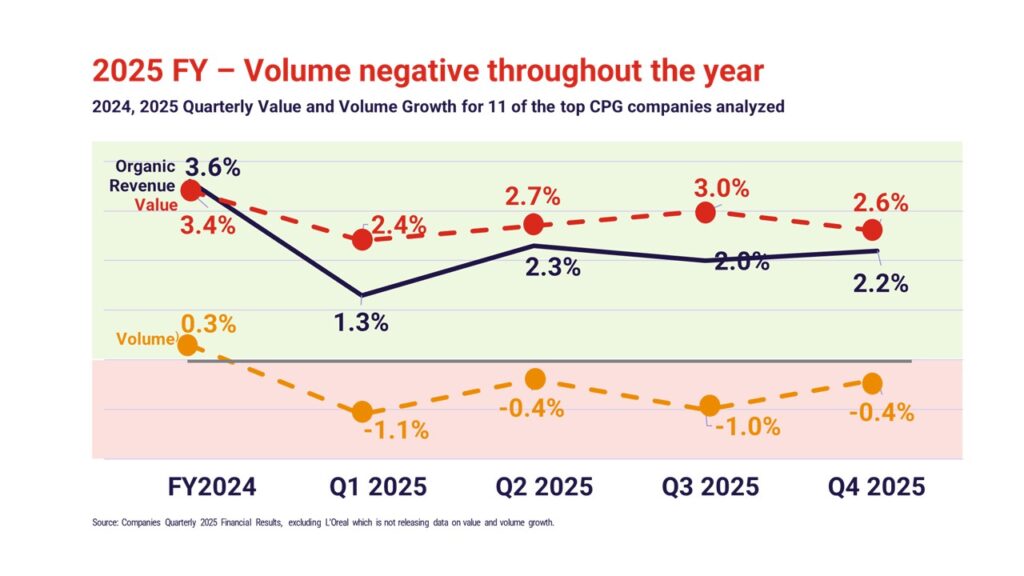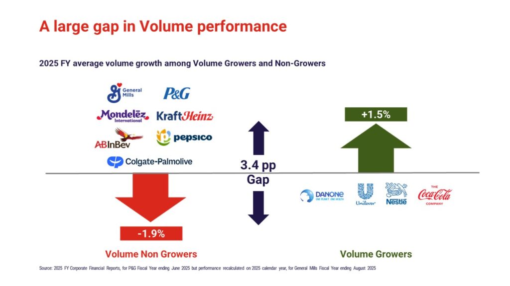 Out of the top CPG players analyzed, only four delivered volume growth in 2025.