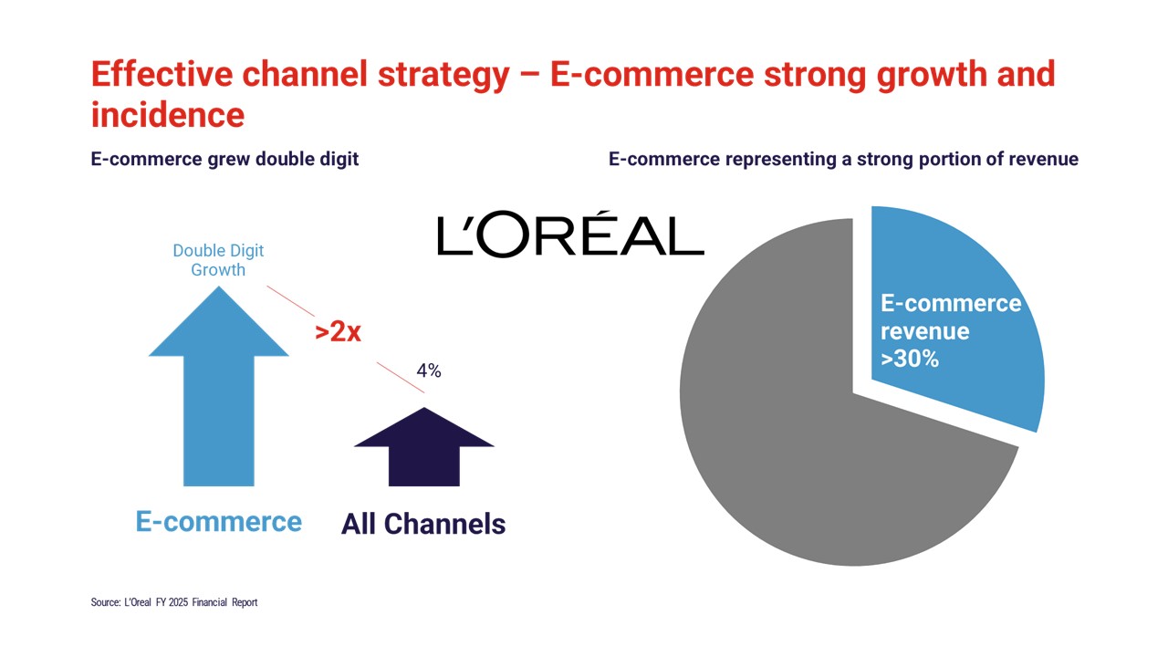 L’Oréal and Nestlé demonstrate strong momentum in e-commerce; Nestlé and others also leverage Away-From-Home. Danone reports faster growth outside mass retail.