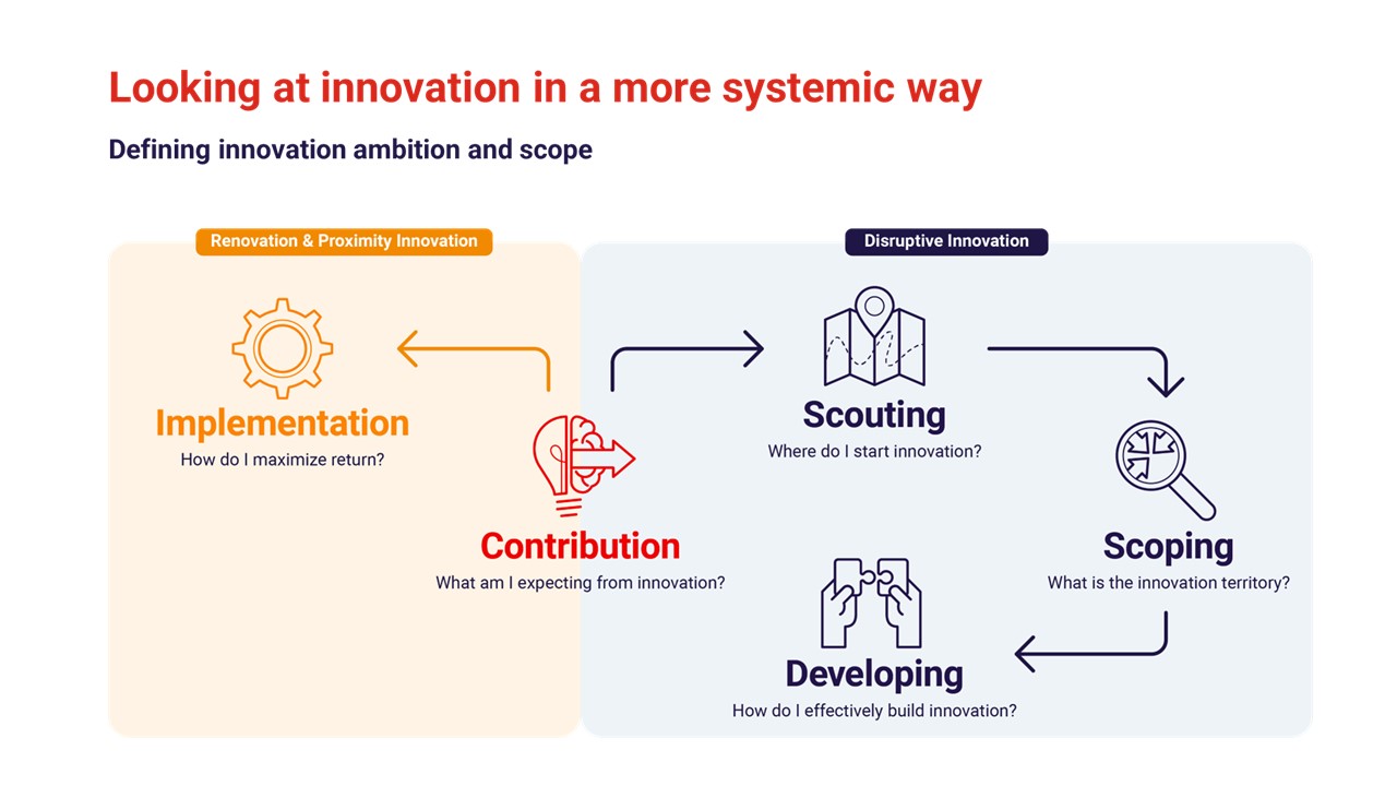 Innovation requires clarity. It should begin with a clear definition of its expected contribution and then follow differentiated paths. Renovation and proximity innovation aim to optimize and reinforce existing assets, while disruptive innovation demands dedicated scouting, scoping, and development logic. Treating these streams distinctly enables more disciplined resource allocation and more consistent long-term impact.