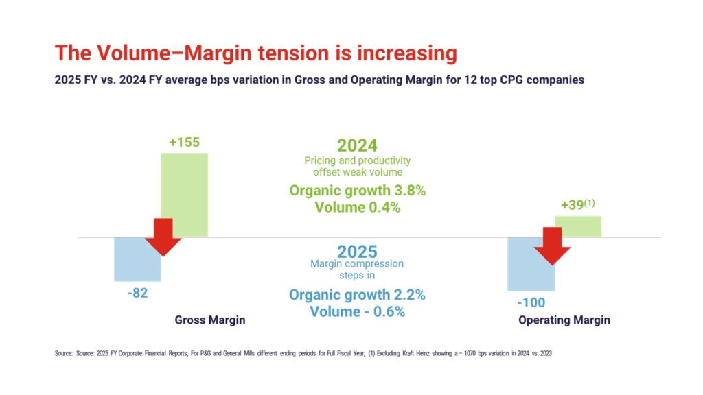 As we already highlighted in our analysis of the Q2 2025 CPG Results, early signs of structural volume pressure were already visible.