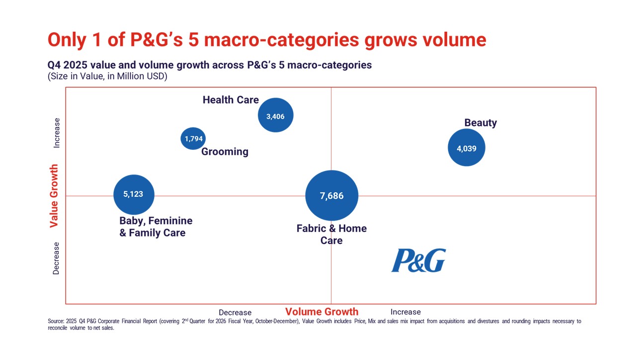 P&G’s 2025 volume challenges, with only one macro-category growing, reinforce the need for portfolio reassessment.
