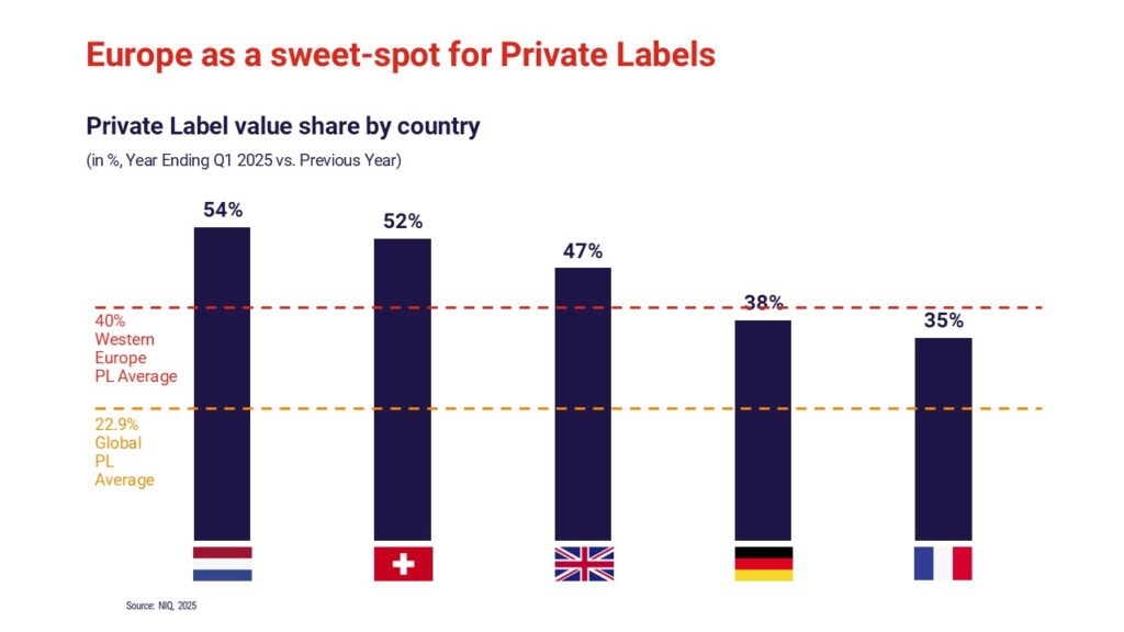 In markets such as Switzerland, the Netherlands or the UK, Private Labels are no longer perceived as an alternative to brands, they are themselves brands and the default choice for many consumers. This reflects a deep behavioural shift, not a temporary affordability response.
