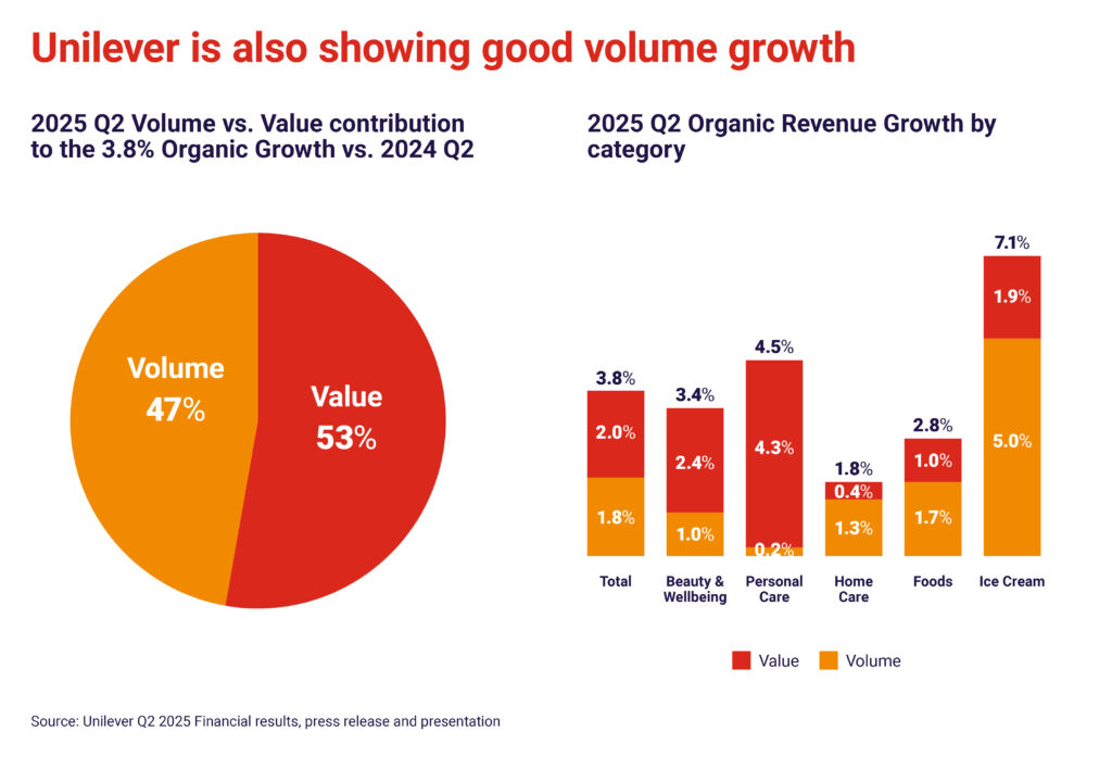 Unilever claims the introduction of new products and line extensions contributed to the volume growth across its different categories.