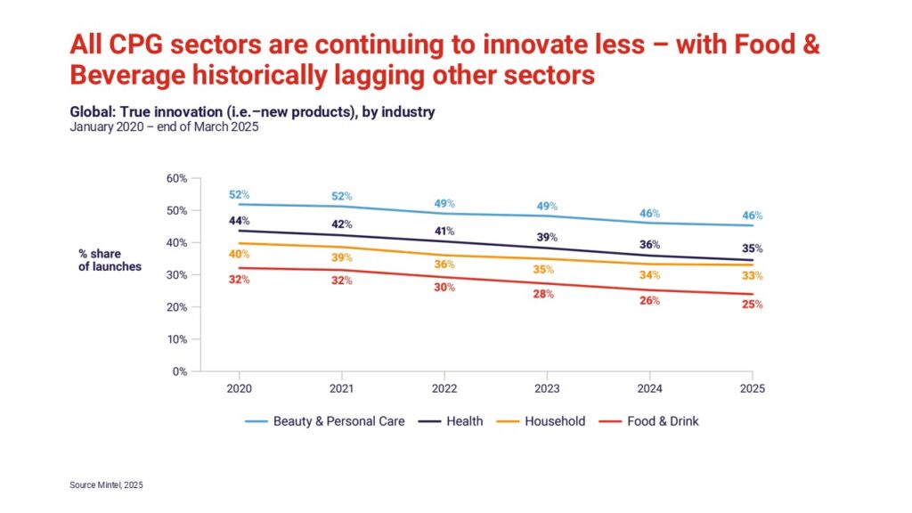True innovation has been gradually declining for a long time across all CPG sectors, particularly for Food & Beverage, increasing its level of exposure to forces that are draining growth and profitability.