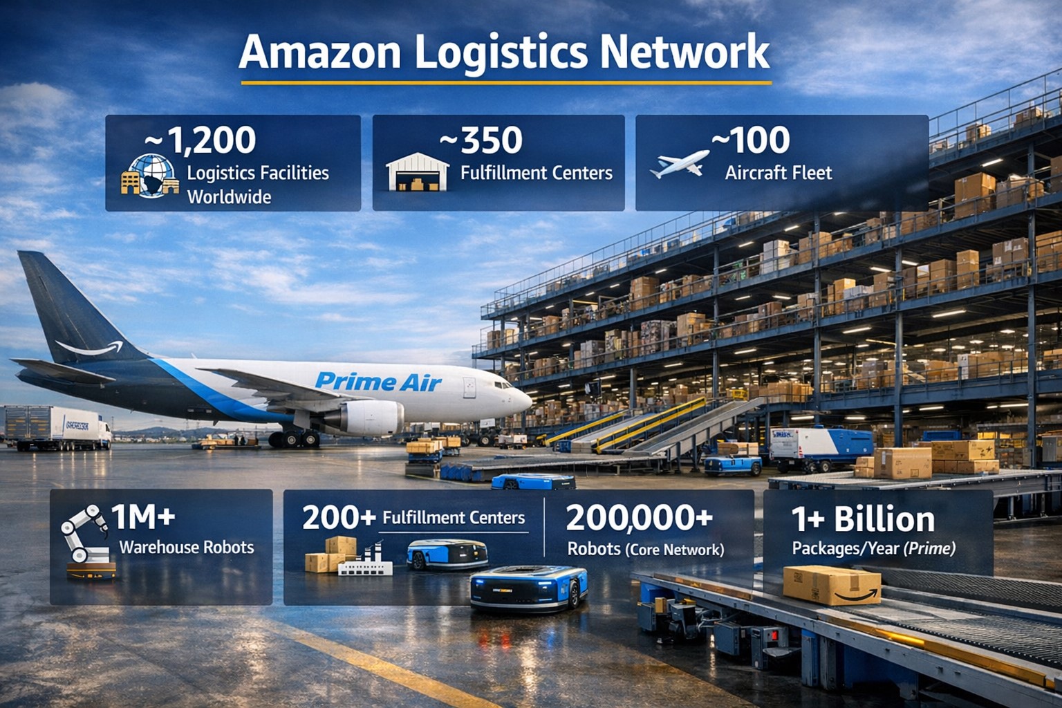 Amazon operates one of the most advanced logistics ecosystems globally, combining:
